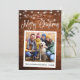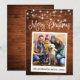 Guión moderno de caligrafía divertida, foto al estilo de la cámara instantáneo Tarjeta navideña de Feliz - Madera rústica de campo con cadenas