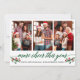 Moderno caligrafía guión 3 Collage de fotos de la familia de fotos más alegría Esta año tarjeta de vacaciones incluye Watercolor Holly Berries - Green Script Happy Año Nuevo 2025