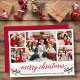 Moderna caligrafía Script 5 Photo Family Collage de fotos Merry Christmas Card incluye Navidades de acuarela Holly Berries - Guión rojo