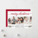Moderna caligrafía Script Merry Christmas 3 Photo Holiday Card incluye Watercolor Holly Berries - Guión rojo