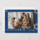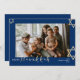 Tarjeta Festiva Calligrafía azul Feliz familia Hanukkah una foto