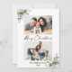 Moderna elegancia Minimalista caligrafía Lápiz manuscrito manuscrito Feliz Navidad 2 tarjeta de festividad incluye elegante color de agua verde y hojas de eucalipto