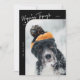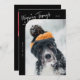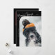 Tarjeta de plantilla de fotos de vacaciones para Navidades graciosos y corteses para dueños de perros con un texto escrito a mano que dice "vagando por el invierno" con una foto de tu perro. El fondo es negro.