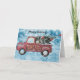 Tarjeta Festiva camión de cosecha roja sobre fondo de copo de niev