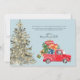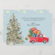 Tarjeta Festiva Camión rojo acuarela con regalos y árbol de Navida