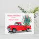 Camión rojo antiguo tradicional con un cactus de Navidad brillante. En lugar del árbol esperado, aquí hay un cactus Agave. Cambie los Felices Fiestas si lo desea. El mensaje del reverso también se puede cambiar.