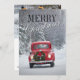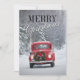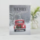 Tarjeta Festiva Camioneta Roja Conduciendo en Nieve