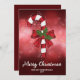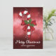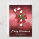 El ilustracion original de Destei de una caña de caramelo a rayas rojas y blancas Navidades a rayas decoradas con un arco rojo y una planta de Navidades holly / Common Holly. El fondo es un bokeh rojo festivo. También hay dos áreas de texto personalizables.