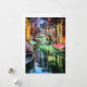 Corrientes de luz sobre edificios, bajo un puente y a través del agua en esta interpretación digital de un canal vintage en Venecia, Italia. Basado en una fotografía.