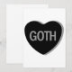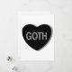 Un corazón de caramelo en escala de grises que dice, "GOTH."