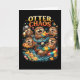 Una ilustración divertida de nutrias traviesas chapoteando en el agua mientras disfrutan de snacks, juguetes y diversión veraniega en un estallido de caótico júbilo.