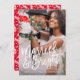 ¡Las características del este diseño una foto de corrimiento llena con una lectura cepillada moderna de la fuente "casada y brillante", perfeccionan para los pares que celebran su primer navidad como recienes casados! Las características del diseño traseras un fondo rojo brillante de la baya con día de fiesta ramifican. El color de fondo puede ser cambiado haciendo clic en el botón del personalizar.