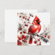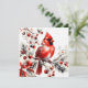 Tarjeta Festiva Cardenal rojo acuarela en la rama de bayas