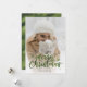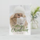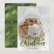 Cartas de Navidades de fotografía verde personalizado con una foto con un overlay de nieve y un guion con letras a mano en el frente y un falso Relieve metalizado verde con nieve en la parte posterior. Personalice fácilmente estas tarjetas de Navidades de fotos verdes con su imagen y texto.