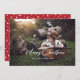 Cartas de Navidades de fotos rojas personalizados con un overlay de nieve y un bello guión festivo en el frente y estrellas en un fondo rojo plano en la parte trasera. El fondo se puede cambiar a cualquier color. Personaliza fácilmente estas tarjetas de Navidades de fotos rojas con tu imagen y un nombre de familia.