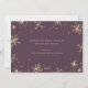 Cartas de Navidades de fotos moradas con copos de nieve brillantes en un fondo morado.