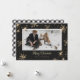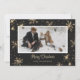 Hermosas tarjetas de Navidades de foto de doble cara en blanco y negro con mantas de búfalo y copos de nieve brillantes y estrellas con un título de caligrafía de oro y un marco fotográfico. Un búfalo negro y blanco resplandeció el fondo al fondo.