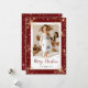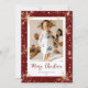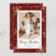 Tarjetas de Navidades brillantes rojas personalizados con copos de nieve, estrellas y nevada en un fondo rojo. Personaliza fácilmente estas tarjetas de Navidades de fotos rojas con tu imagen, texto y nombre de familia.
