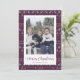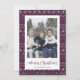Nostálgicas tarjetas de Navidades con fotos de suéter morado, verde y blanco feas con Santa Claus, reno, copos de nieve y árboles. Personaliza fácilmente estas feas tarjetas de Navidades suéter con tu foto y nombre de familia.