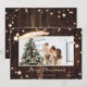 Cartas de Navidades fotográficos con estrellas brillantes personalizados con un marco fotográfico adornado con una estrella en caída y estrellas brillantes sobre un fondo rústico de madera. Personaliza fácilmente estas mágicas tarjetas de Navidades de fotos con tu imagen, nombre de familia y texto.