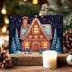 Lleve la magia de las vacaciones a la vida con esta carta original que incluye una acogedora casa de jengibre enclavada en un bosque nevado. Perfecto para enviar saludos festivos a sus seres queridos, esta tarjeta captura la calidez y dulzura de la temporada de vacaciones.