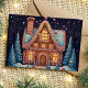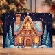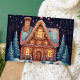 Tarjeta Festiva Casa de pan de jengibre en bosque de nieve