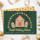 Tarjeta Festiva Casa de pan de jengibre verde con buenos deseos de