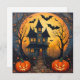 Tarjeta Festiva Casa embrujada de Noche de Brujas, Calabazas