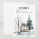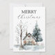Una acogedora casa cubierta de nieve fresca, con una suave capa que cubre el techo y los árboles circundantes. El cálido resplandor de las ventanas contrasta con el frío paisaje blanco, dando a la casa un ambiente acogedor. Los copos de nieve caen suavemente del cielo, creando una escena invernal pacífica que se siente serena y tranquila.