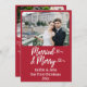 Nuestra primera tarjeta de felicitación de fotos personalizada por Navidad, casada y con mora, en rojo Navidad, es la manera perfecta de celebrar la primera Navidad de los recién casados, con su letra limpia y moderna y sus colores de vacaciones clásicos, y lugares para dos fotos. El alegre mensaje "Casados y Cerezas" es una manera reflexiva y sentimental de celebrar juntos su primera temporada de fiestas. Esta tarjeta forma parte de la colección Married and Merry, que incluye almohadas, adornos y mucho más.