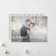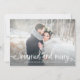 Esta elegante y rústica tarjeta de Navidades fotográficos dice "casado y alegre" en tipografía de escritura blanca, y presenta un aspecto de madera blanca al revés. Perfecto para mostrar tu foto boda favorita en tu primera Navidad juntos.