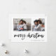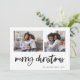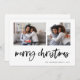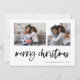 Esta simple tarjeta clásica de Navidad familiar en blanco y negro presenta una tipografía moderna y desenfadada que dice "Feliz Navidad", con una cuadrícula de dos fotos en la parte frontal para un diseño navideño elegante, moderno y minimalista.