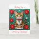 Tarjeta Festiva Cat and Poinsettia Personalized Christmas