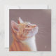 A blank message greeting card with a design of a beautiful ginger cat looking up. Design taken from an original fine art pastel painting.