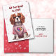 La parte delantera de esta bonita tarjeta El día de San Valentín tiene una imagen de un adorable perro del rey Cavalier, Charles Spaniel, que lleva su suéter de San Valentín. El texto de arriba dice "Todo lo que necesitas es amor" El interior completa el pensamiento, y también dice "Feliz Día de San Valentín". Todo el texto, el frontal y el interior pueden ser personalizados a cualquier otra cosa que prefieras.