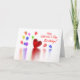 Una colorida tarjeta de felicitación de cumpleaños El día de San Valentín con mi diseño de globos y un corazón rojo en el agua brillante. El texto dice "¡Feliz cumpleaños de San Valentín!"