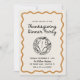 ¡Inviten a sus amigos y seres queridos a que se reúnan todos los años para dar las gracias o empiecen una nueva tradición familiar! Este diseño presenta una tipografía divertida, con letras a mano y colores brillantes de mostaza, y doodles y garabatos dibujados a mano, entre ellos un pavo y objetos de acción de gracias sobre el tema para las últimas vibraciones de moda, modernas y retro. Este producto es perfecto para reuniones familiares de día de agradecimiento, un divertido evento de amistad o incluso un fiesta de trabajo.