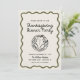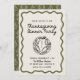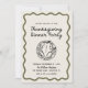 ¡Inviten a sus amigos y seres queridos a que se reúnan todos los años para dar las gracias o empiecen una nueva tradición familiar! Este diseño presenta una tipografía con letras a mano divertida y colores verdes del ejército caprichosos y doodles y garabatos dibujados a mano, incluyendo un pavo y artículos de acción de gracias sobre el tema para las últimas vibraciones de moda, modernas y retro. Este producto es perfecto para reuniones familiares de día de agradecimiento, un divertido evento de amistad o incluso un fiesta de trabajo.