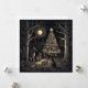 Una carta de Navidades encantadora con una acogedora escena de un perro alegre y dos gatos juguetones compartiendo un plato festivo. Este encantador ilustracion, situado en un entorno de luces de vacaciones brillantes y nieve suave, capta el espíritu de unión y amor durante las vacaciones.