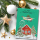 Soar into the season with this whimsical vintage style Aviation themed Christmas card! Design features a classic Cessna Skyhawk aircraft flying through a star-filled night sky, proudly hauling a fully decorated Christmas tree strapped atop its wings. Below, a house surrounded by snow covered pine trees and a sled, while the festive greeting “happy holidays” shines in script lettering.