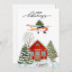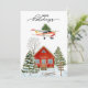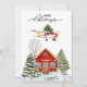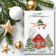 Soar into the season with this whimsical vintage style Aviation themed Christmas card! Design features a classic Cessna Skyhawk aircraft flying through a star-filled night sky, proudly hauling a fully decorated Christmas tree strapped atop its wings. Below, a house surrounded by snow covered pine trees and a sled, while the festive greeting “happy holidays” shines in script lettering.