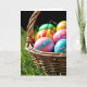 Tarjeta Festiva Cesta de Pascua con huevos en hierba