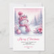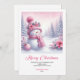 Tarjeta Festiva Charming Pink Snowman Kids Editable Christmas Card