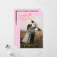 Modern New Year's photo template card featuring a hand written script text that says "cheers to the new year" with a curved frame picture. You can add another picture and a message on the back of the card. Orange pink.