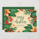 Flat business holiday greeting cards feature "Merry Christmas" and your company name on the front of a design of orange poinsettias and berries. Your personalized thank you message, names and logo are printed on the back.