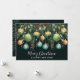Elegant Christmas holiday flat greeting cards feature a design of pine branches, green and gold Christmas ball ornaments and ribbons on a black background with your details in chic lettering on the front and your personal greeting and names on the back. Order PRINTED and/or INSTANT DOWNLOAD to send digitally. MATCHING items in our collection.