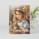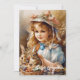 Tarjeta Festiva Chica de cosecha con capilla y dos conejos en cest