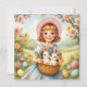 Celebra la alegría de Pascua con nuestra encantadora "Chica de Pascua con tarjeta de vacaciones de conejo". Esta encantadora carta cuenta con un caprichoso ilustracion de un chica alegremente sosteniendo una canasta llena de coloridos huevos de Pascua y adorables conejos, que capturan la esencia de las festividades de primavera. Perfecto para enviar cálidos deseos a sus seres queridos, esta tarjeta seguramente traerá sonrisas y difundirá la alegría de las vacaciones. ¡Consiga que sus saludos de Pascua sean memorables con este encantador diseño!