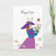 Tarjeta Festiva Chica de Pascua de Vestido Púrpura