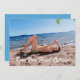 Tarjeta Festiva Chica de vacaciones de primavera en Sandy Beach